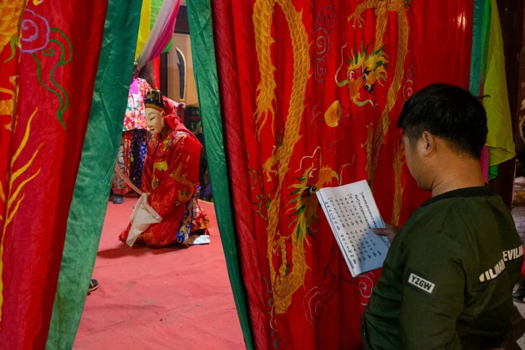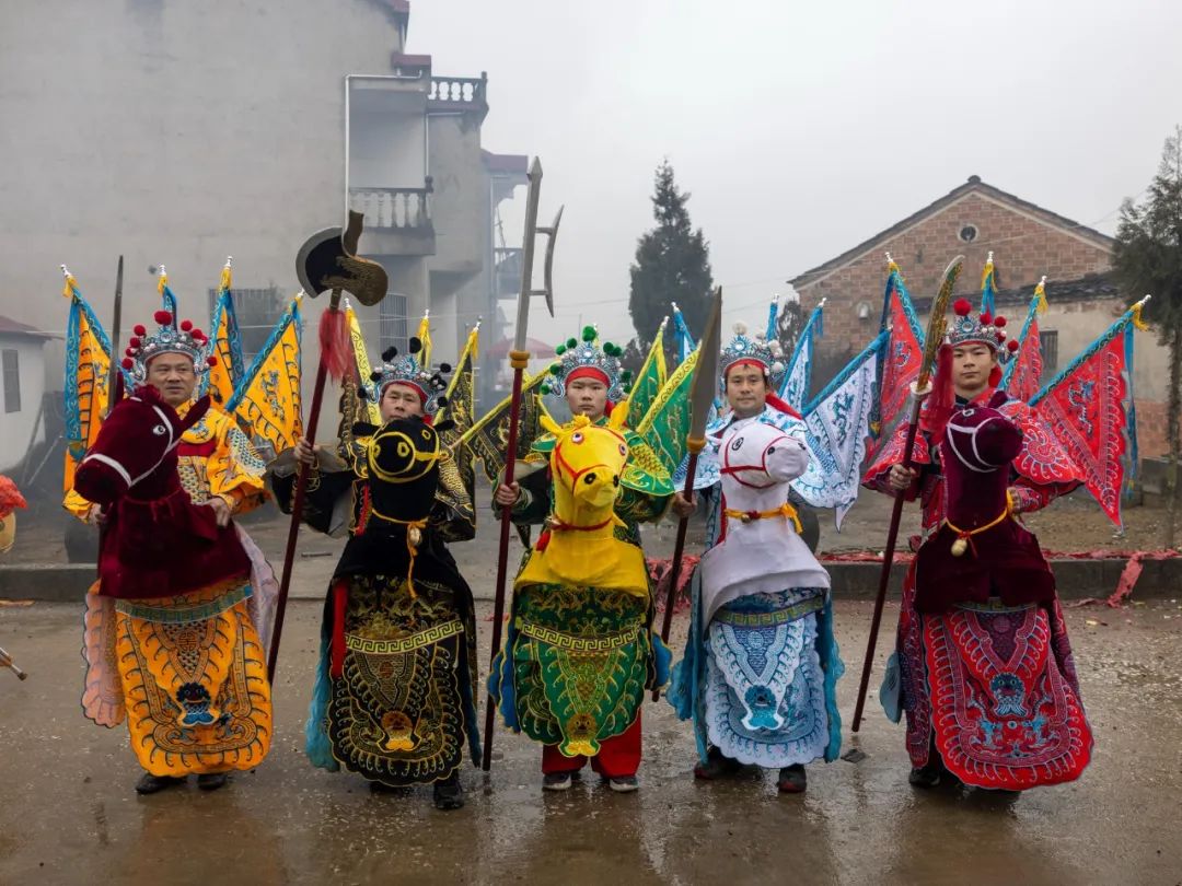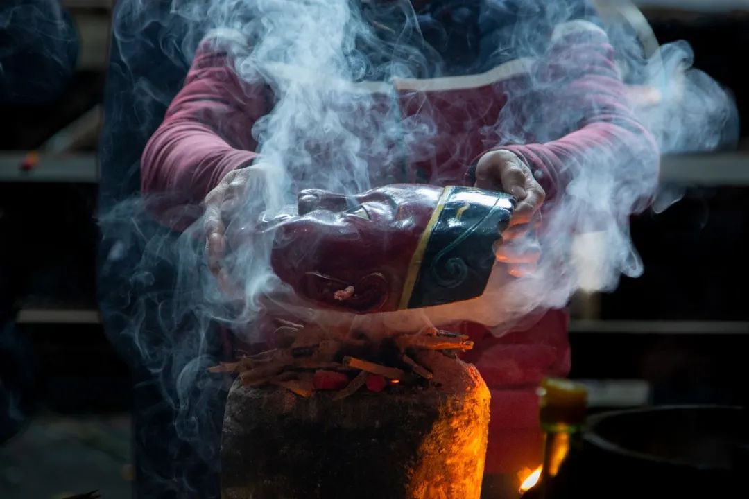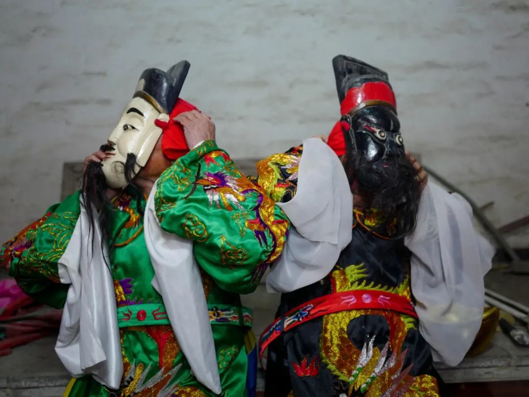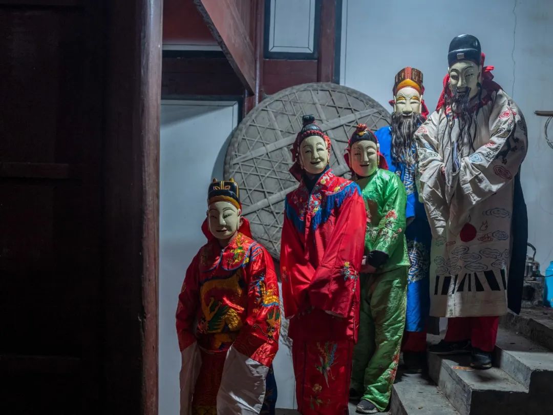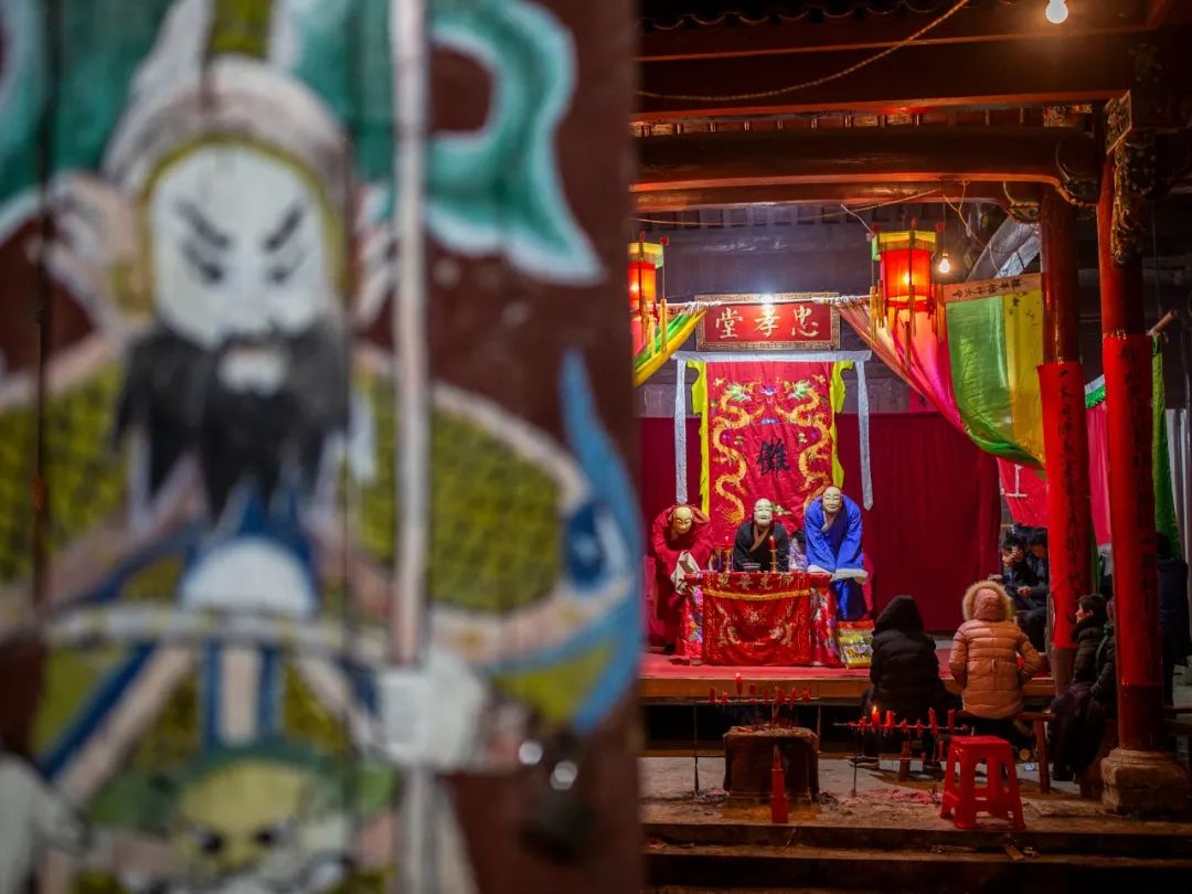 贵池傩戏演出为三段体,即傩仪、傩舞——正戏——傩舞、吉祥词。也就是在正戏的前后,必须有“请神”和“送神”仪式,如“迎神下架”、“送神上架”、“请阳神”、“朝庙”等。此组照片拍摄于2017至2022年,记录下这些乡傩戏承者的瞬间状态。」