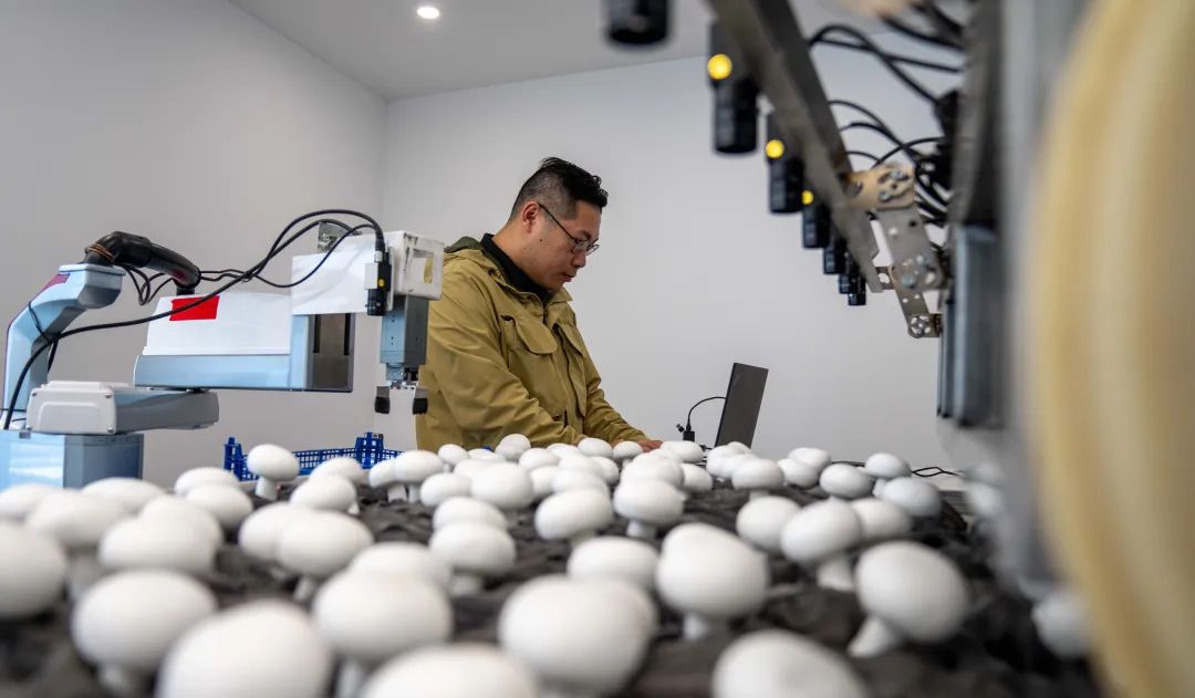 褐菇,又称洋松茸,因其菌肉肥厚、口感细嫩鲜美、营养价值极高,在市场上供不应求。上海恒泽企业发展有限公司作为中国最大的褐菇生产企业,其现代化菌菇种植基地运用菌菇人工智能生产系统“ZEN”,确保温度、湿度、二氧化碳等多维度、全方位智能化管理,实现高效率、高品质齐头并进。企业自主研发、具备核心专利的褐菇采摘机器臂,生产价格已经完全覆盖人力支出,机械臂装备订单已经走向海外。
