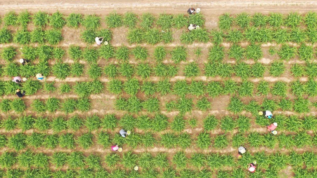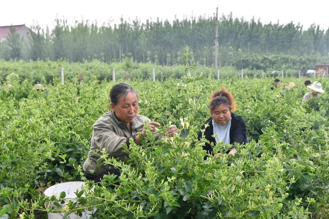 村民在迁安市扣庄镇扣庄村金银花种植基地采摘金银花。(杨硕)原标题:《《人民日报》刊发|迁安:金银花开摘“金银” 铺就乡村振兴路》