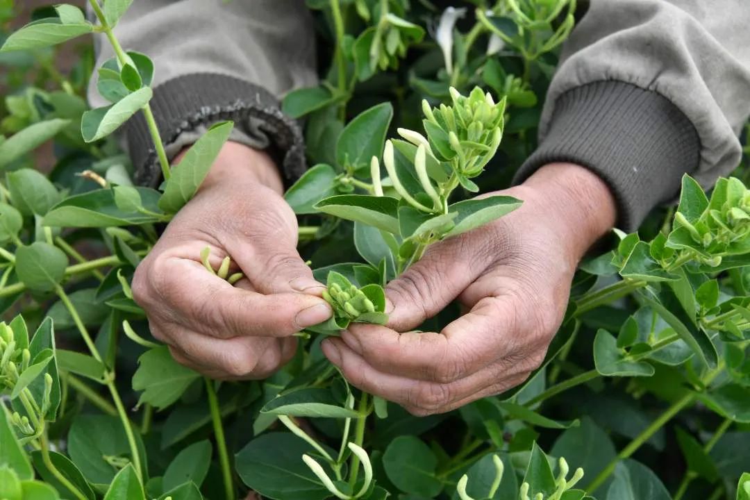 五月是金银花开的时节,在河北省迁安市金银花种植基地,空气中弥漫着淡淡的花香,成片的金银花枝条在风中摇曳,花蕊竞放,放眼望去,村民们正忙着采摘,一派忙碌的丰收景象。在扣庄镇的金银花种植基地,正值盛花期的金银花竞相开放、长势喜人,一簇簇花朵挂满枝头。黄白相间的金银花簇拥竞开,浓郁的绿叶中,有含苞欲放的,有完全盛开的,一蓬蓬、一串串,清香四溢。村民们穿梭于花海中,娴熟地采摘着新鲜的金银花。 五年前栽植的金银花达到丰产期,有的已经长成小树,每年哟近四个月的采摘期。采摘、称重、计量……随着村民们陆续将采摘好的金银花运到烘干房,烘花工人抓紧开始摊花、烘花。每亩就能有一万元以上的收益。要比传统一年一茬种植花生、玉米,经济效益要出几倍。近年来,迁安市以调整农业产业结构为中心,以促进农民增收为目标,以“公司+农户+基地”的农业产业化经营模式,利用土地资源优势,发展金银花、瓜蒌等药材产业,让村民稳步增收。( 梁玉龙 王志斌)