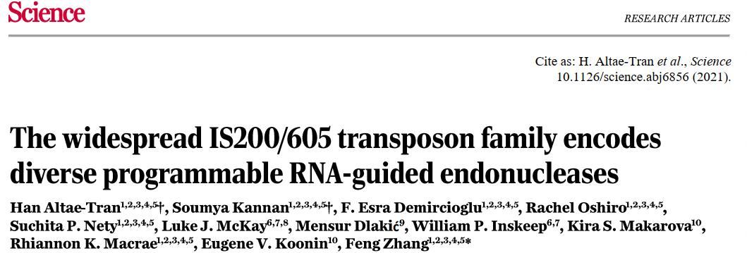2021年9月,张锋团队在 Science 期刊发表论文【1】,发现了一类广泛的转座子编码的RNA引导核酸酶,并将其命名为OMEGA系统(包括IscB、IsrB、Tnp8)。其中IscB可能是Cas9的祖先。