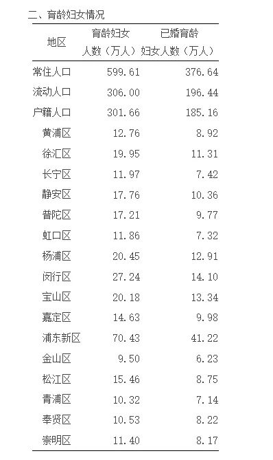 数据来源:上海市卫生健康委员会官网育龄妇女情况数据显示
