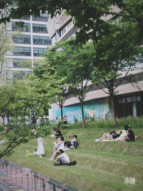 设计师们来拍项目完工的照片,没想到已经看到很多人坐在这儿,吃午餐、聊天,或是靠在草坡上休息。当时就已经很热闹了,只是最近才在网上因为热门帖子而爆红出圈。