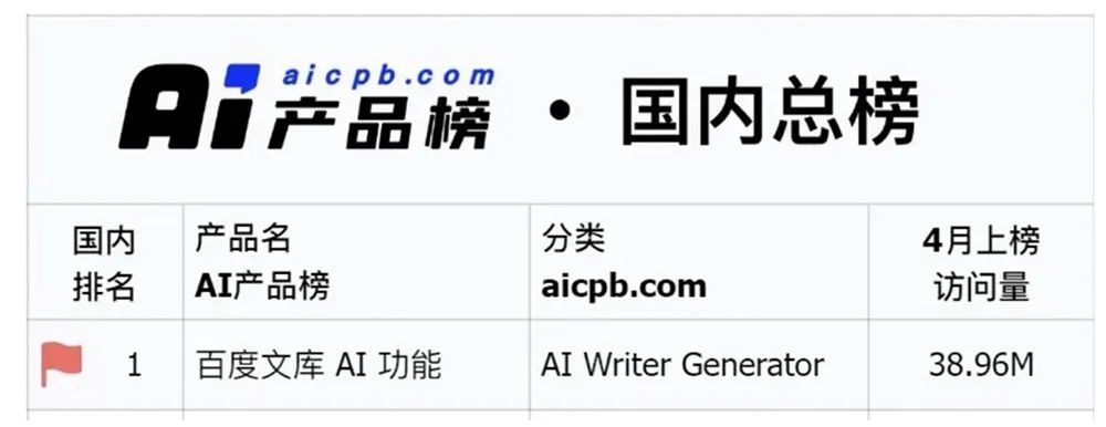 像“头脑风暴”、“写大纲”等功能,对于文字工作者发散思维、激发灵感都能提供便利。据悉,百度文库已实现多格式、多文档的生成、编辑全能力打通,AI新功能深受用户喜爱。最新一期AI产品榜显示,百度文库AI功能位列国内总榜第一名。