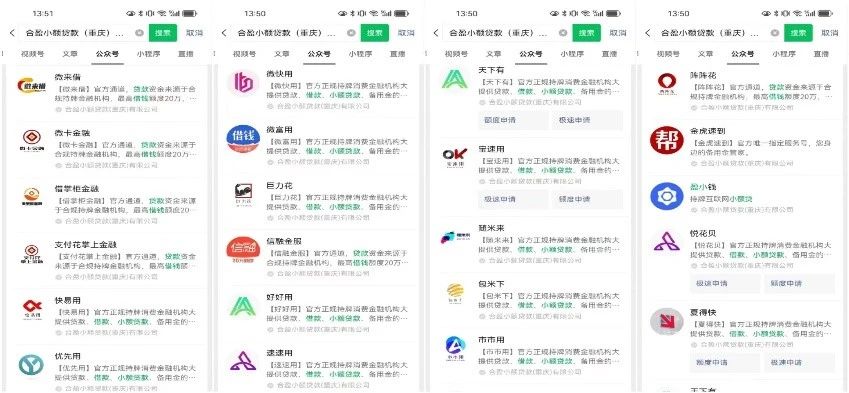 海右财经发现,有多家小贷公司同时上架几十个类似的公众号产品。