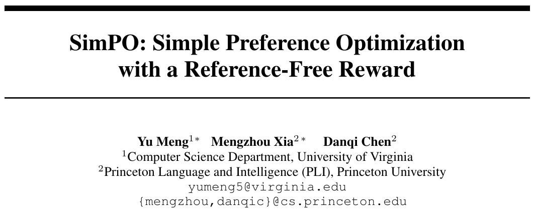 论文标题:SimPO: Simple Preference Optimization with a Reference-Free Reward
