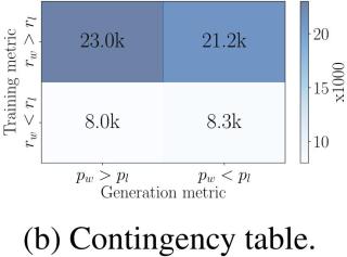 。事实上,在使用 DPO 训练时,留存集中大约只有 50% 的三元组满足这个条件(见图 4b)。