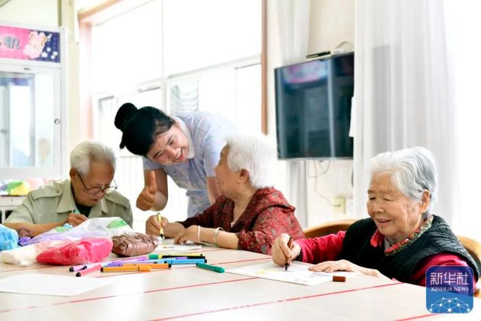↑5月25日,在日照市东港区石臼街道日照幸福护理院,老人在工作人员的陪护下做填图游戏。近年来,山东省日照市东港区以老年人养老需求为导向,着力打造“15分钟养老生活圈”,构建起社区、机构相协调,医养康养相结合的养老服务体系。目前,东港区共建成各类养老服务设施300余处,其中养老机构19家,床位总数2495张,努力让老年人“老有所医、老有所养、老有所乐、老有颐养”。