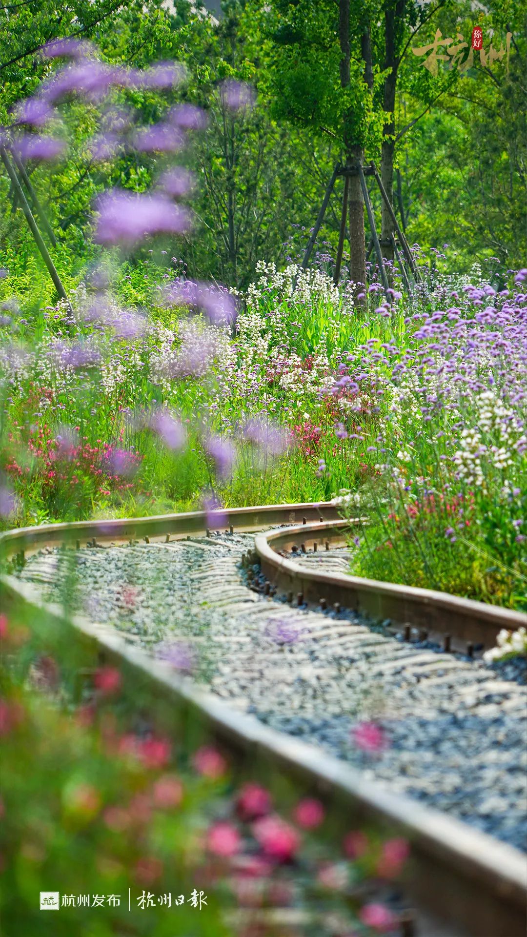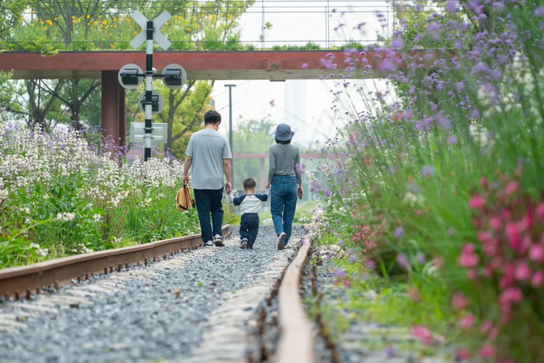 图源/运河辰祥而底下延伸出去的轨道,两边的花菖蒲、鸢尾、堆心菊、大滨菊斑斓盛放,五月花海正盛,仿佛闯进一片“莫奈花园”。