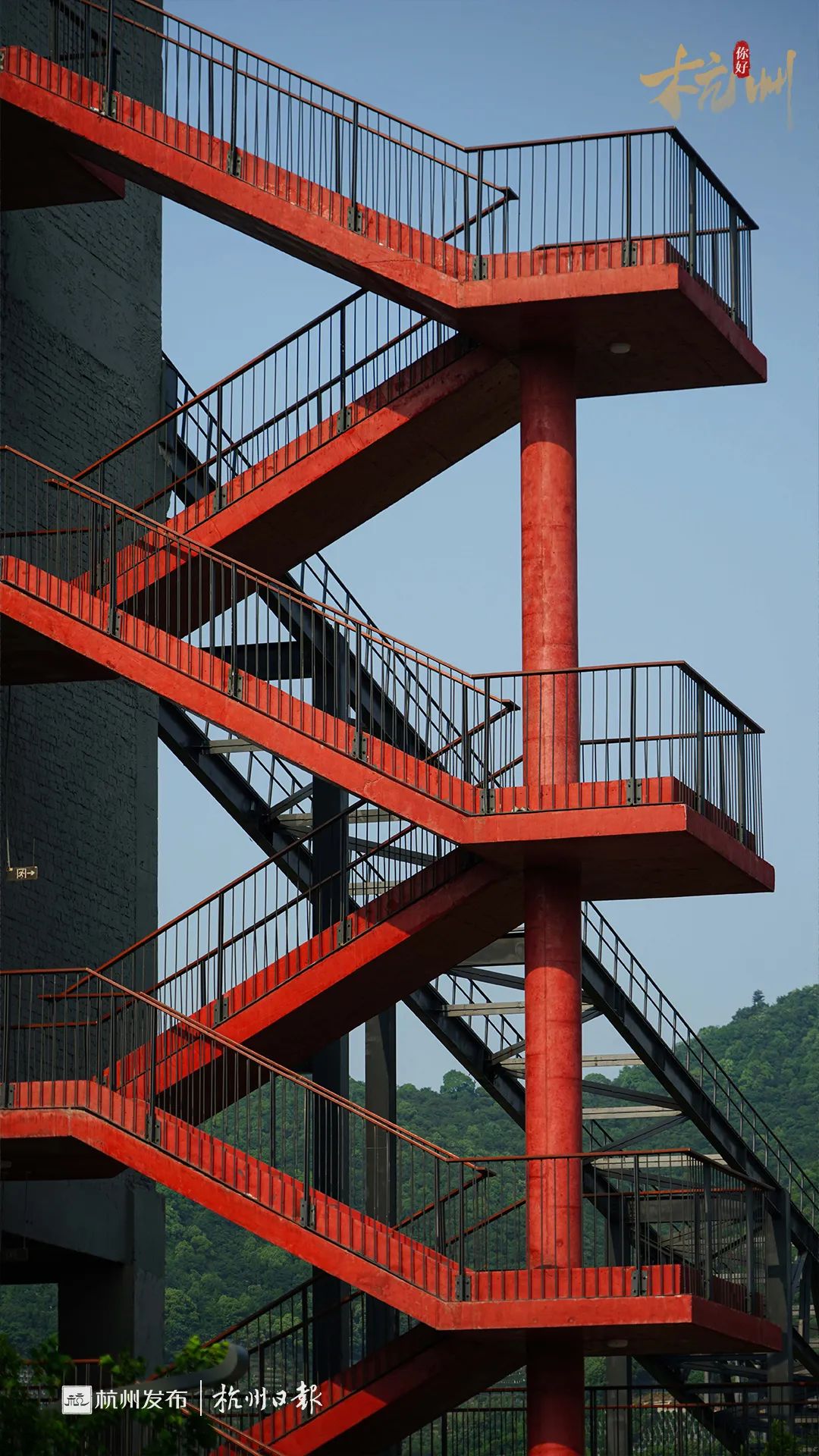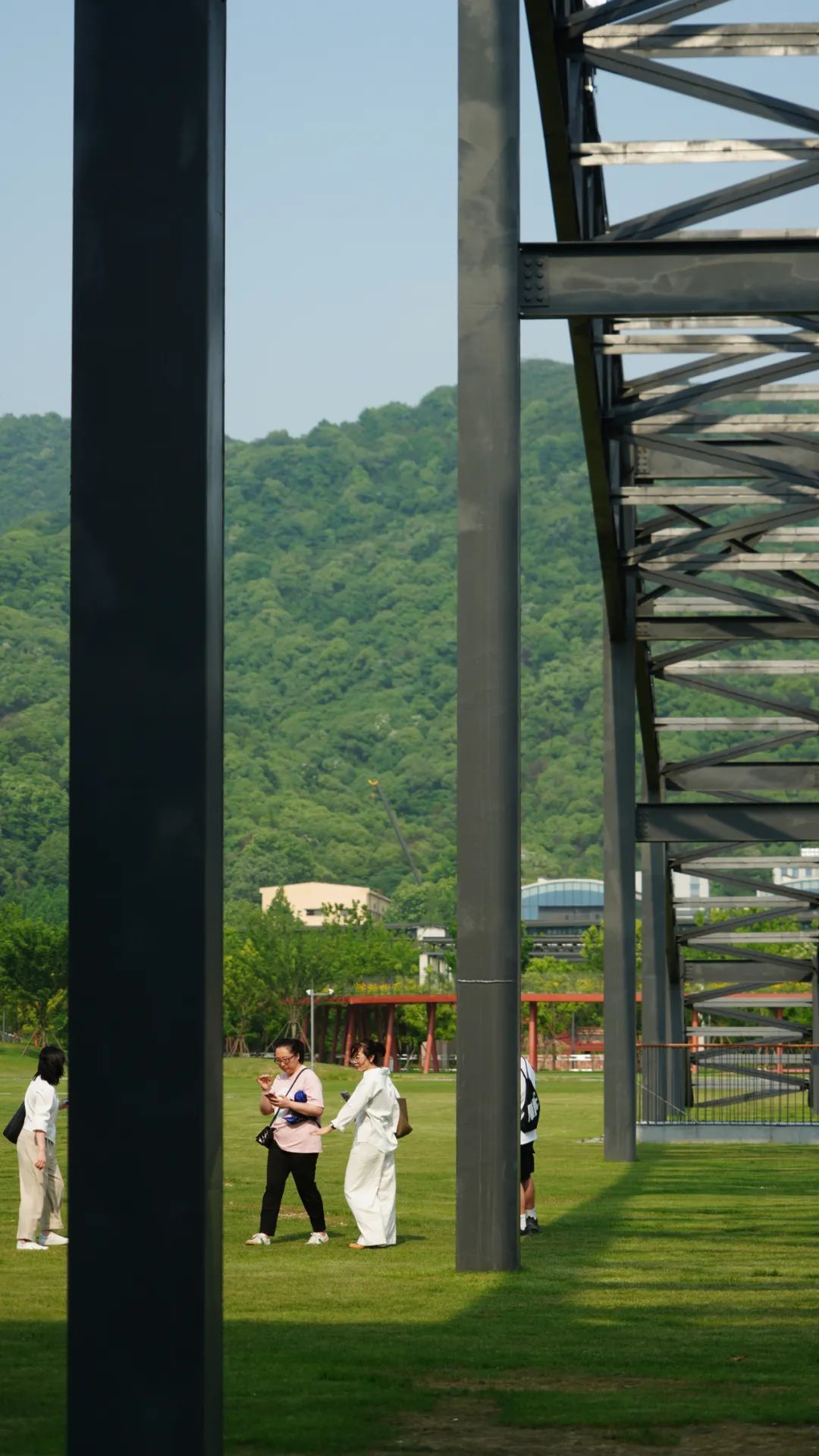 公园里不缺一些新造的红色钢铁建筑,这也是为了融合杭钢本身气质。浓厚的工业氛围,成为了年轻人公园打卡的新晋地标。