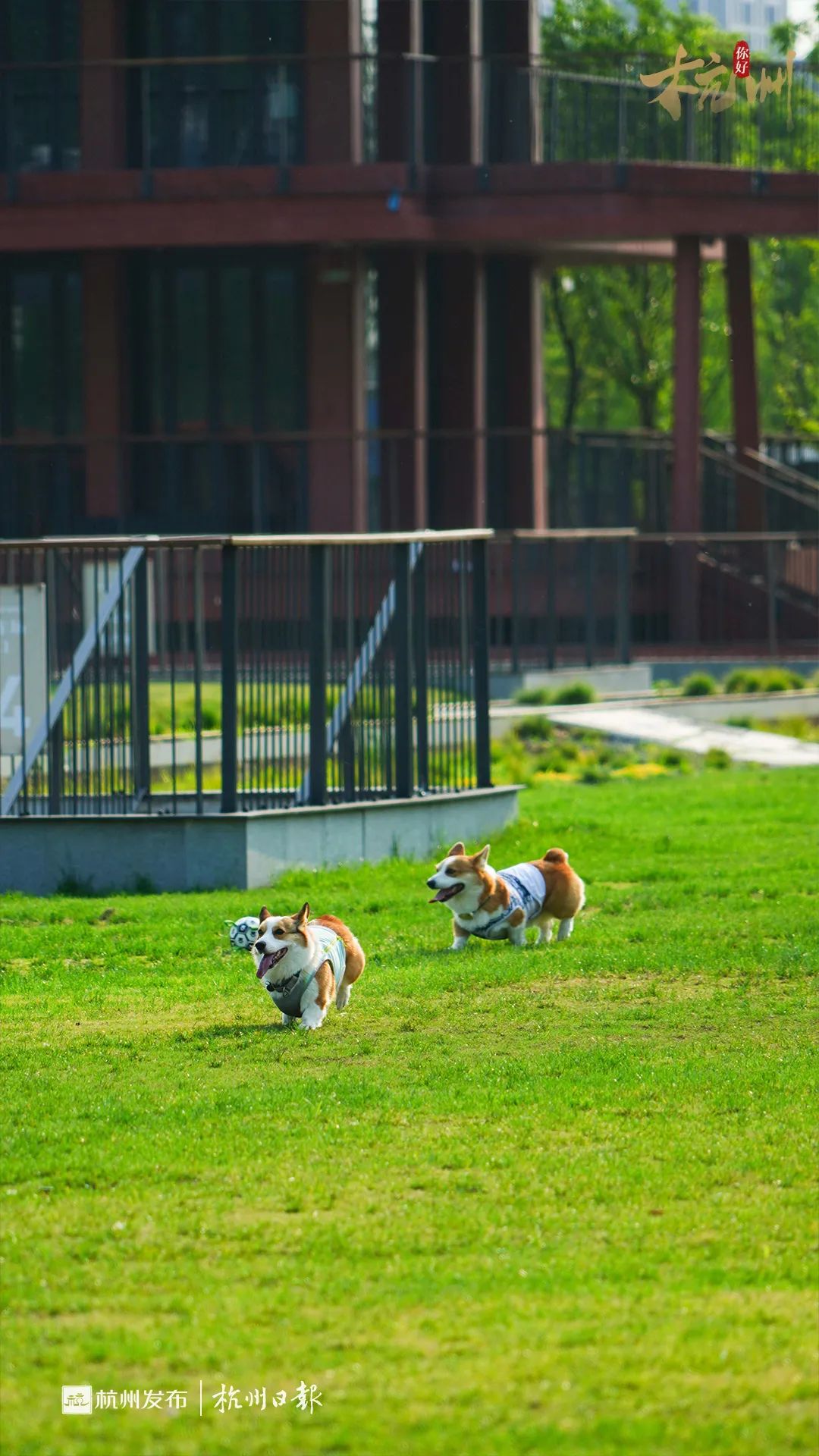 公园20分钟效应,在大运河杭钢公园得到了验证。随便荡荡,几位结伴前往的老大哥走走停停,来找寻当年回忆;前来遛狗的女士一个撒手,两条柯基犬欢腾地在中央大草坪前玩起了球。夜幕降临,公园的人多了起来,遛弯的、夜跑的比比皆是,主打一个松弛感。
