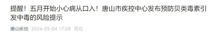 此前,唐山疾控也发布了预防贝类毒素引发中毒的风险提示。