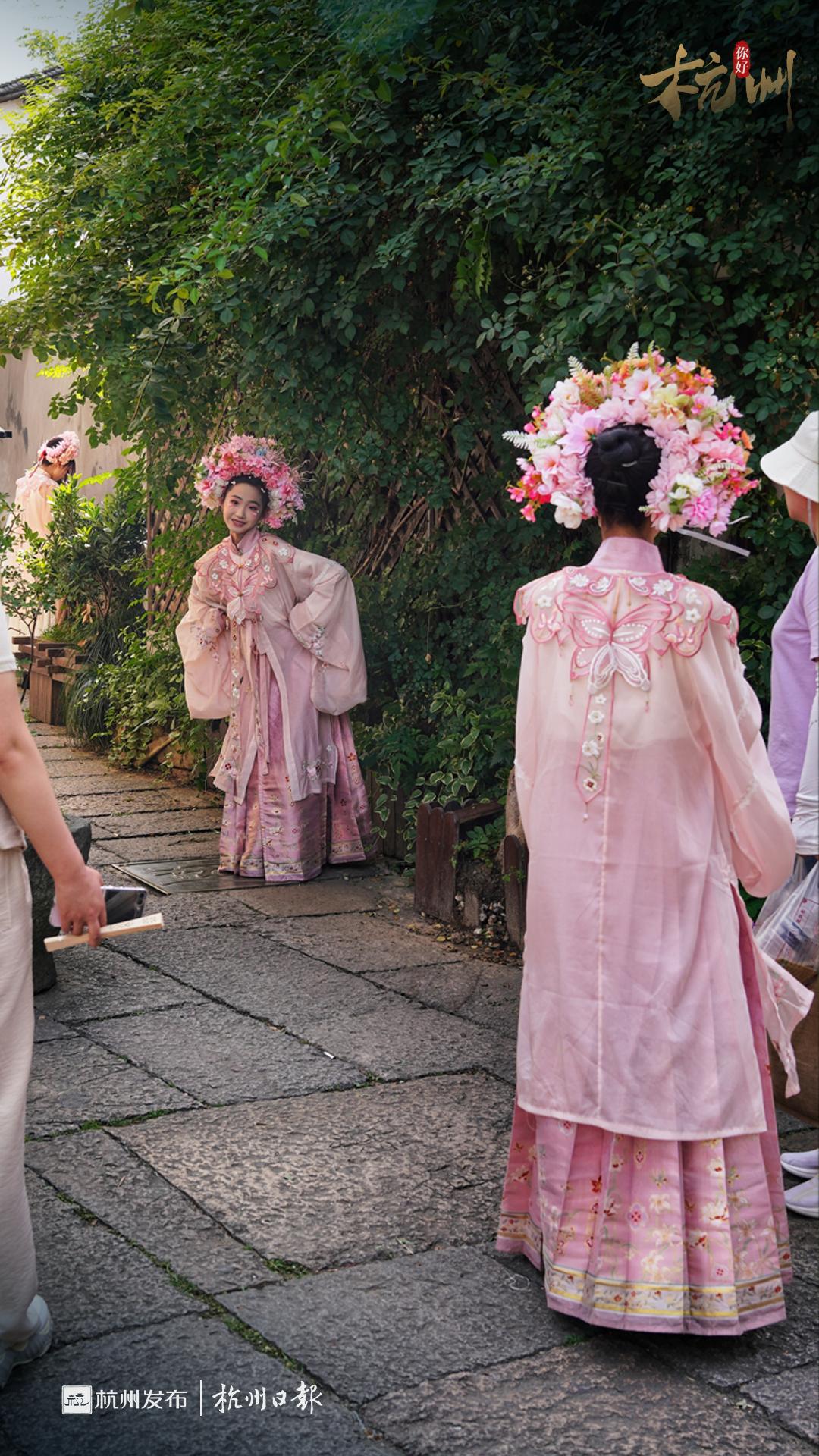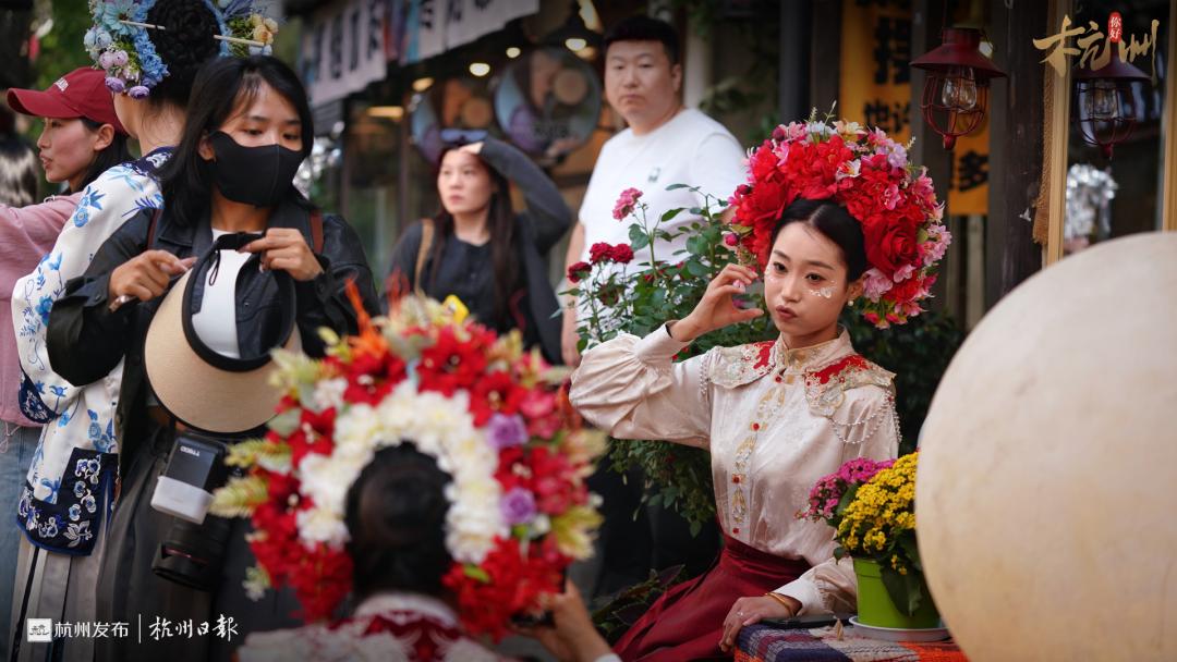 来小河直街拍“簪花”大片,成了杭州眼下时髦的新玩法。1公里长的街区,“簪花女郎”络绎不绝,有人刚下飞机提着行李箱就赶来!为什么那么火?跟着小布一起去探探。