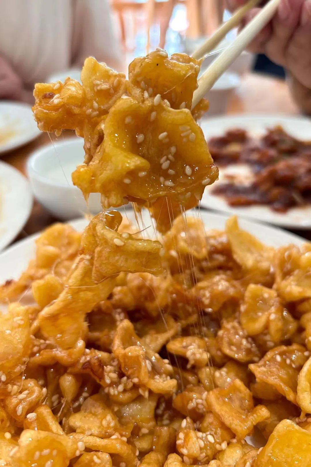 还有一道名菜炒代蟹,则更考验处理食材的功力,它口感似蟹却不见蟹,仅用蛋黄、蛋清和鱼肉等材料,就能处理出类似蟹肉的爽滑口感,再用虾油和海米增添海洋风味,一盘炒代蟹不仅口感层次丰富,蟹香也被完美复制出来,堪称舌尖上的奇迹。