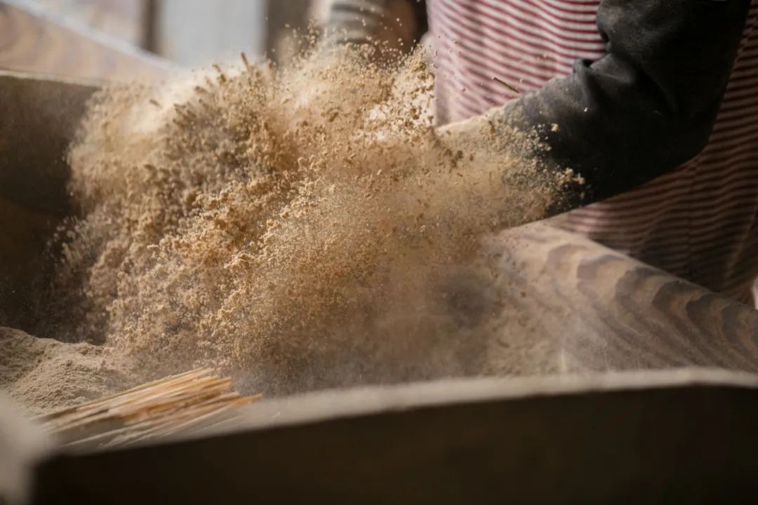 ▲ 晒香林文溪先生既是永春制香的非遗传承人,也是一位企业家,至2024年,已在制香业耕耘了38年。早年,他的祖辈在达埔开设“兴隆香号”,口碑极佳。他说,他仿佛生来就属于这一行,年少时就对香非常感兴趣,小学时,常在路边偷偷看别人制香,下课后总背着书包在路边玩香。刚满16岁,他便去汉口制香厂当学徒,比同期的学徒更快地掌握了制香的全部技艺。作为一棵好苗子,林文溪很快被“伯乐”发现,转聘到台资企业,一路做到管理岗位。