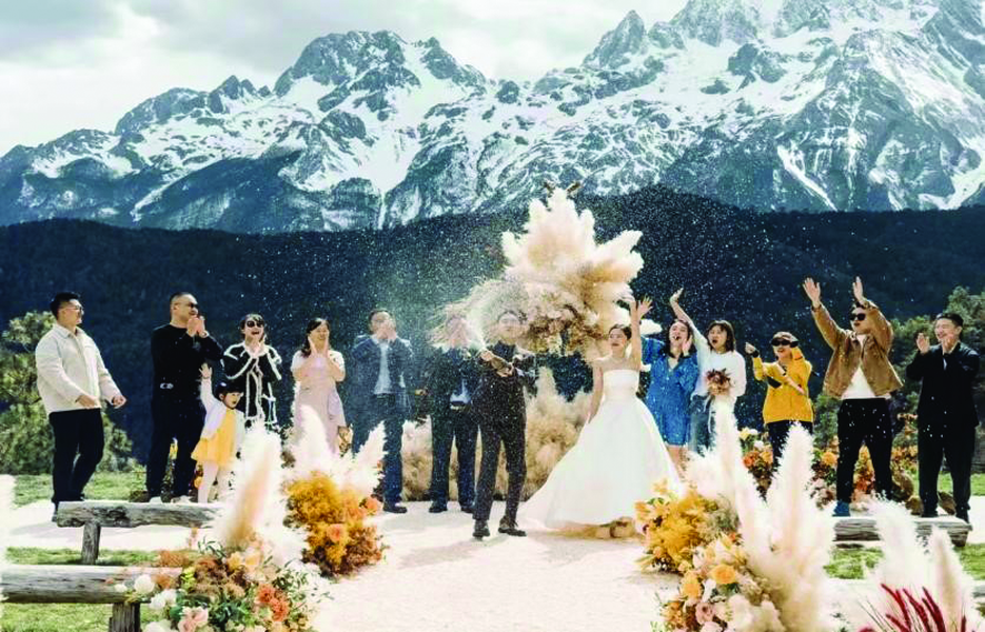 图为一对新人正在雪山下举办“极简风”婚礼。随着年轻消费者思想观念和生活方式不断变化,婚礼模式也悄然改变。记者看到,如今主打轻松、环保的“极简婚礼”逐渐流行,并成为越来越多年轻人的新选择。新人们在轻松自在的氛围和极致的性价比中,享受着全新的婚礼体验。