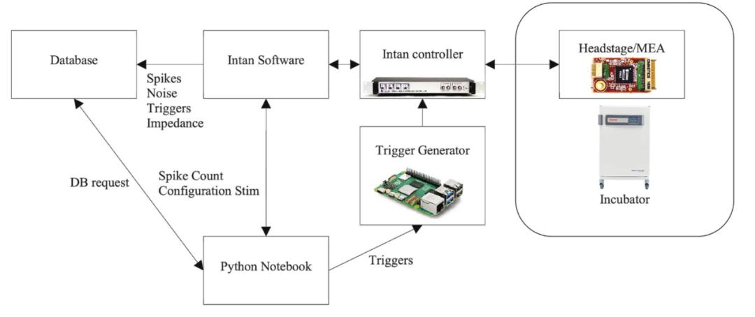 除了电生理操作外,API 还控制泵、数字摄像头和 UV 灯进行分子释放。这允许执行复杂的全天候实验,包括闭环策略和使用最新的深度学习或强化学习库进行处理。