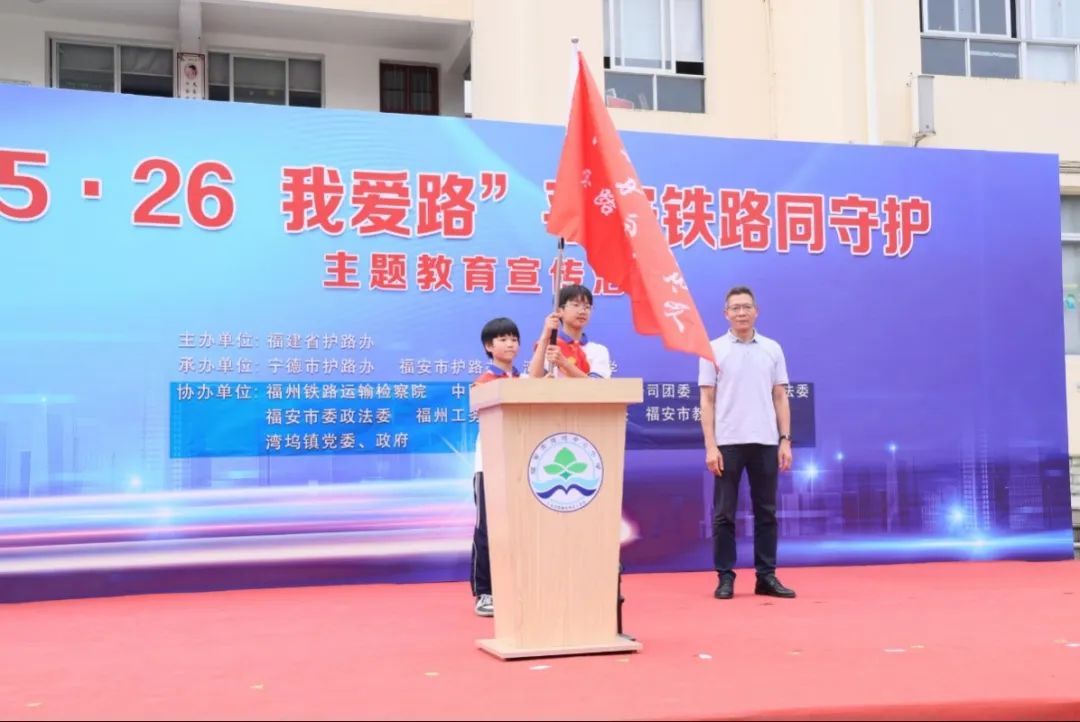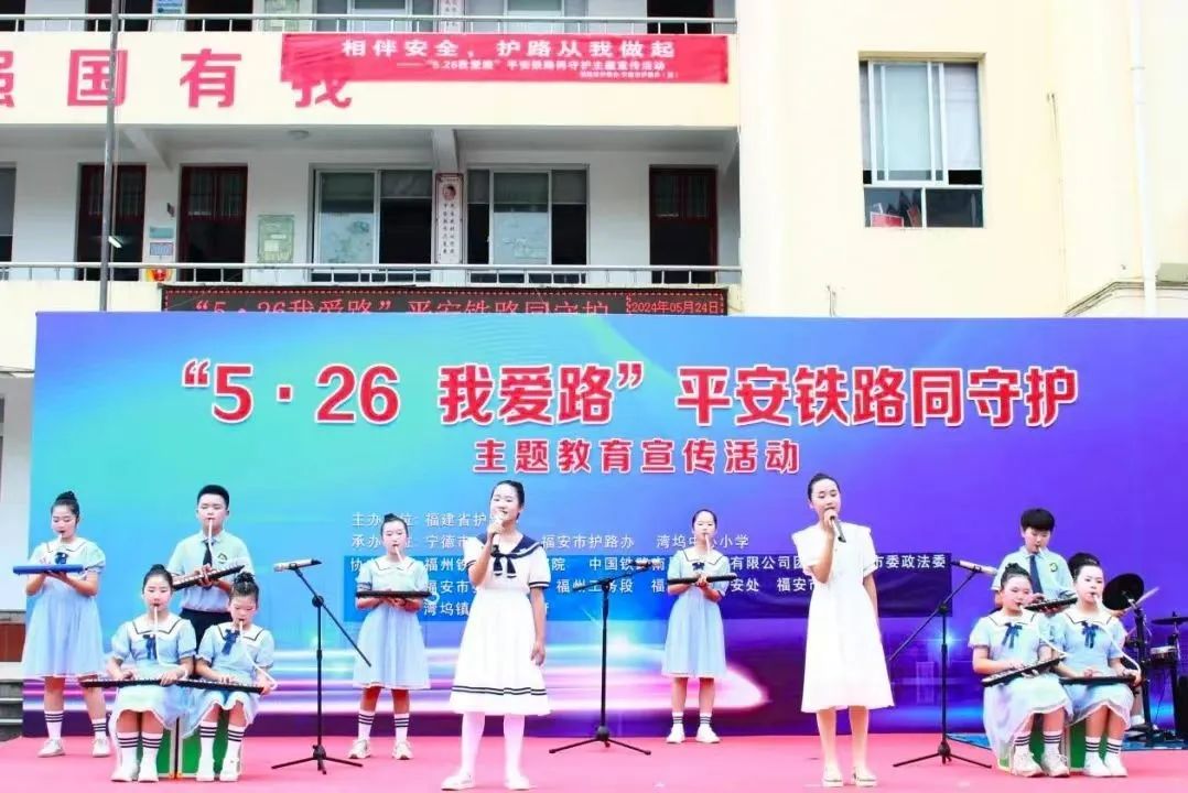 为提升铁路沿线群众和中小学生爱路护路意识,加大法治宣传力度,确保铁路安全畅通,5月24日,福州铁路运输检察院与福建省护路办等多家单位在宁德福安市湾坞中心小学联合开展“5·26我爱路”平安铁路同守护主题教育宣传活动,现场有文艺汇演、集中宣讲、集体宣誓等系列活动。