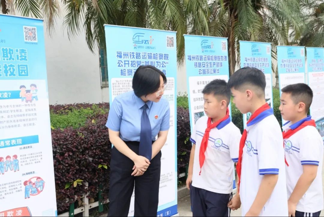 左右滑动查看更多期间,铁检干警立足检察职能,把铁路外部环境安全检察公益诉讼工作、未成年保护工作与爱路护路宣传活动统一起来,布置展板,现场宣讲,通过“法律服务流动号”,向莅临领导讲解福州铁检今年在公益诉讼及铁路安全方面的工作成效及路外环境安全典型案例,获得领导一致好评。