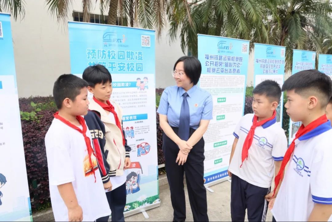 左右滑动查看更多同时,干警向学生们宣讲铁路安全法律法规、公益诉讼常识、校园欺凌、侵害未成年人案件强制报告制度等知识,教育引导学生养成遵纪守法的良好习惯,不做危害铁路安全的事,在保障自身人身安全的同时,共同守护铁路安全。学生们积极聆听检察官姐姐的宣讲,并表示将严守铁路安全规定,争做守护铁路安全的“小卫士”。