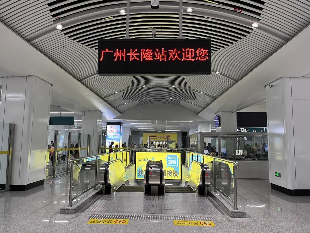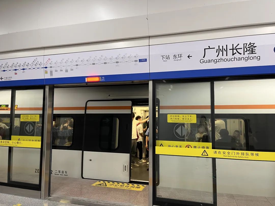 记者乘坐城际列车前往广州长隆站后,