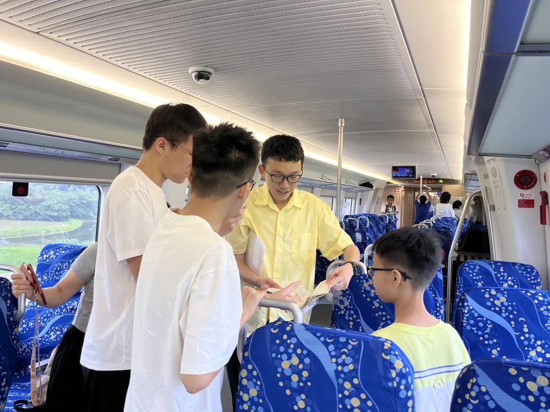 广州市民李聚向同车厢游客分享珍藏的火车票。“作为铁路迷一定要体验一下‘湾区大号地铁’,这趟城际列车的乘坐感很好,行驶平稳,工作人员服务态度也很热情,为很多初次体验的乘客都提供了很大的帮助。”李聚对记者说。