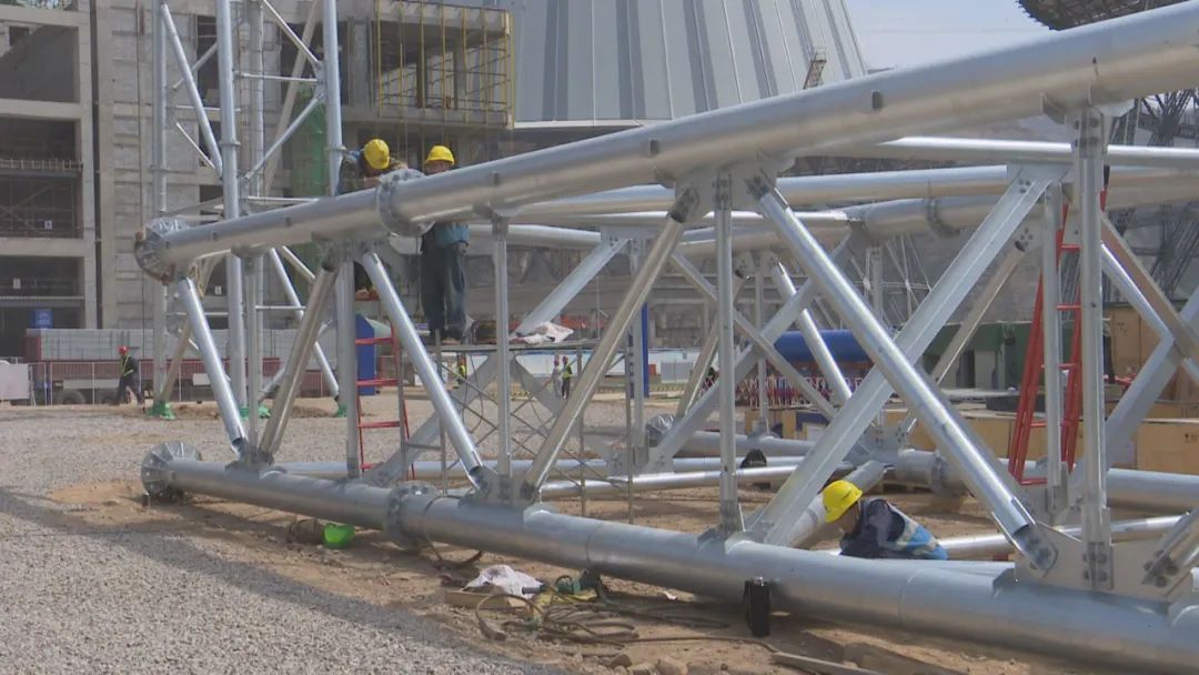 近日,记者在该项目施工现场看到,工人们正在进行电除尘、间冷塔钢结构吊装,侧煤仓上部结构安装,烟囱内筒和运煤大桥等工程施工。