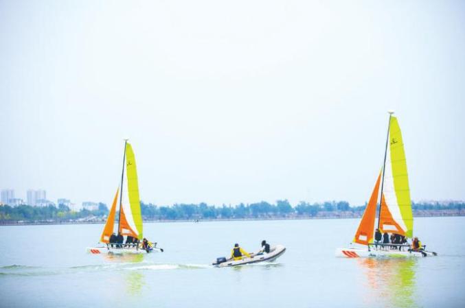 游客在滹沱河艺术生态岛游玩。(景区供图)
