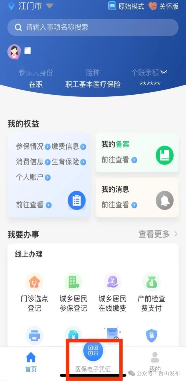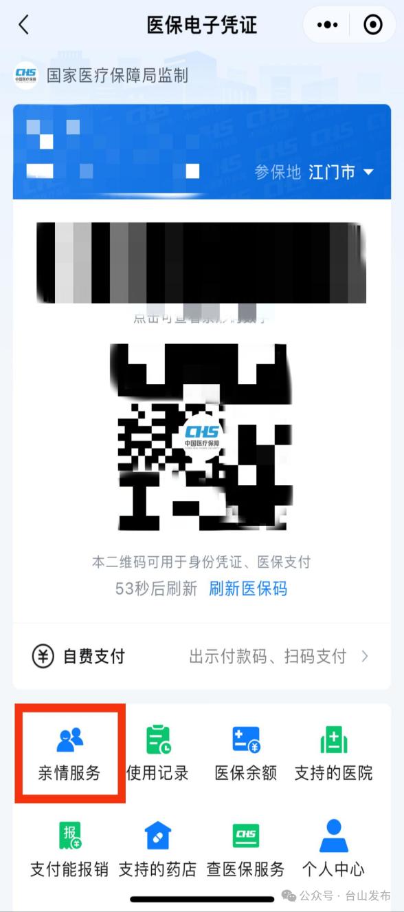 1.在粤医保界面点击“医保电子凭证”,跳转后点击“亲情服务”