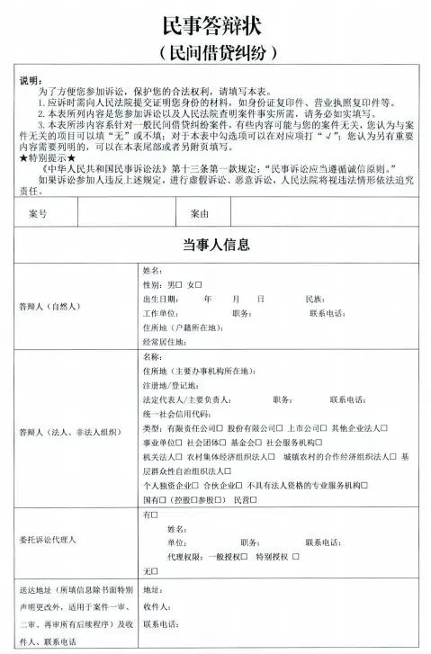 1.民间借贷纠纷民事起诉状、答辩状