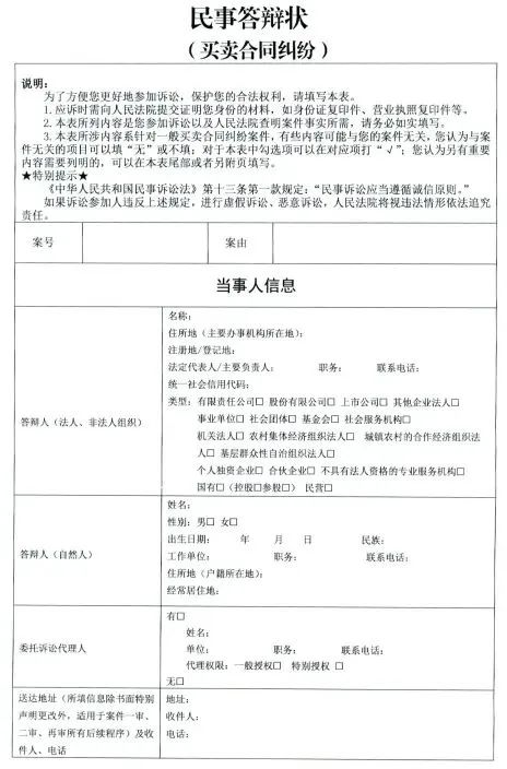 3.买卖合同纠纷民事起诉状、答辩状