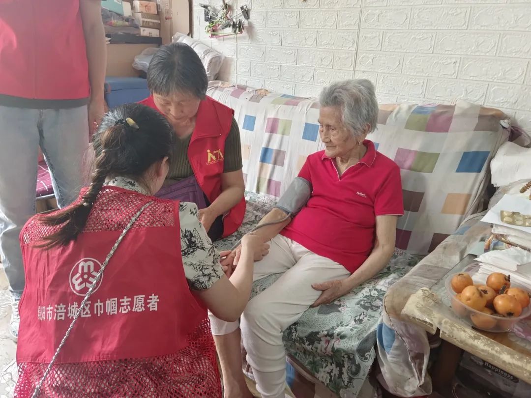 5月24日,工区街道长虹社区妇联走访慰问高龄老人,了解身体、生活状况,帮助打扫卫生、测量血压。
