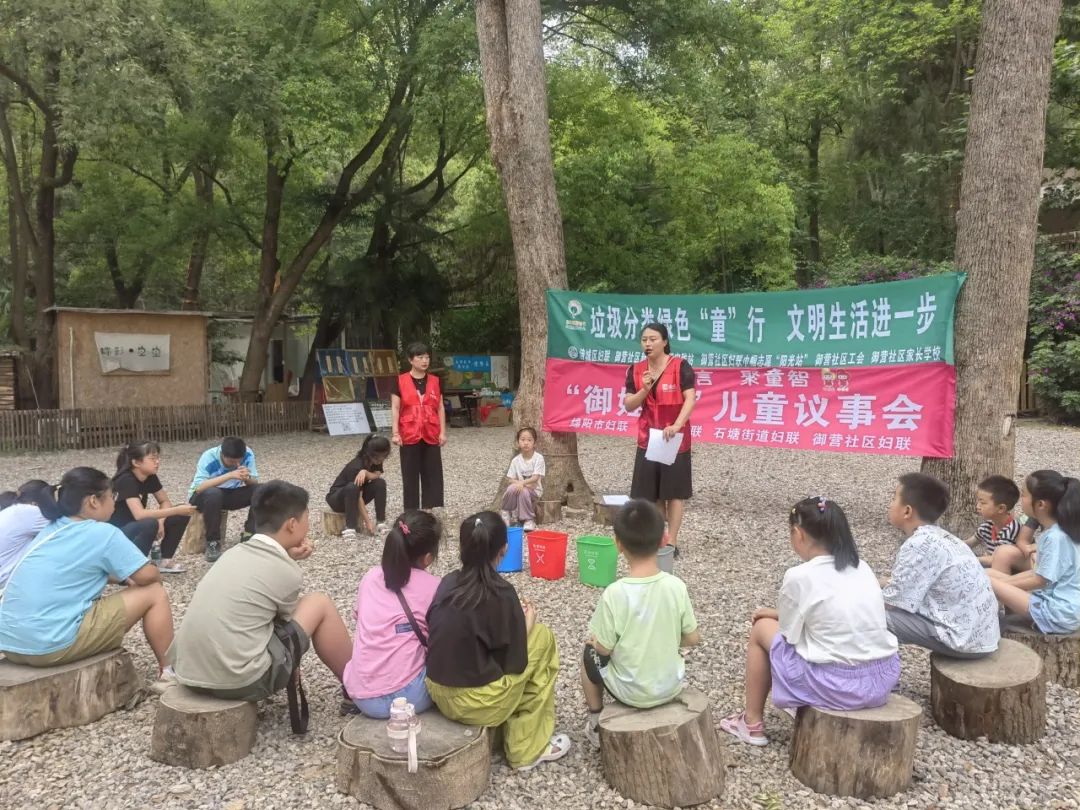 5月25日,石塘街道御营社区妇联开展“垃圾分类,绿色童行”儿童议事会活动。