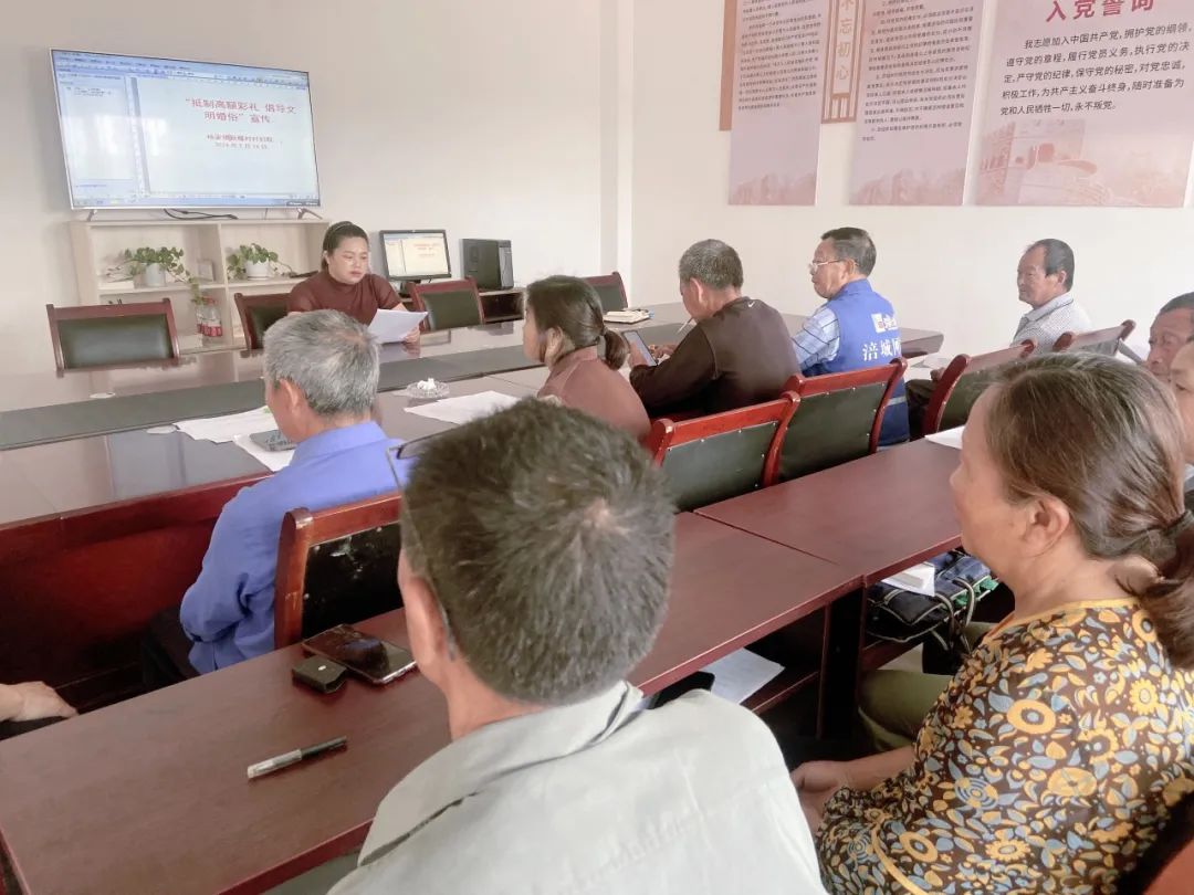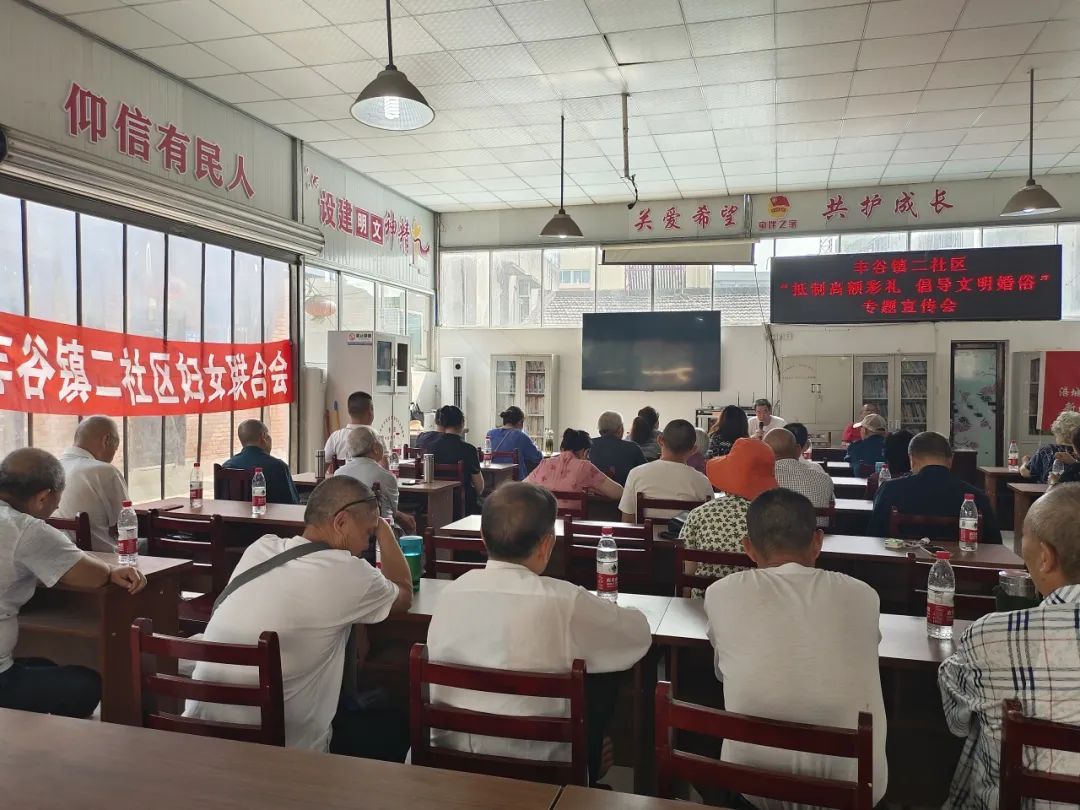 5月23日,丰谷镇二社区妇联召开“抵制高额彩礼、倡导文明婚俗”宣传会。