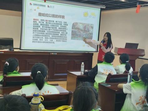 5月18日,老师向孩子们介绍了低碳节能周的意义,带领大家一同探索能源的奥秘。通过讲解和互动问答的形式,孩子们深入了解了能源的种类、来源及其在生活中的重要作用。小队长为环保小卫士们讲述了撒哈拉沙漠的变迁史,并通过图片和视频展示了沙漠化对环境的破坏,引导孩子们思考如何保护环境、防止沙漠化。