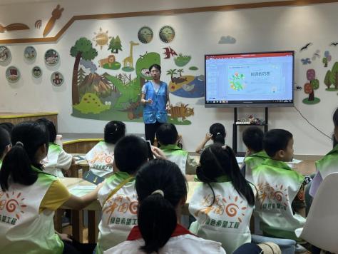 5月20日,在团庐阳区委指导下,海棠街道平楼社区少工委召集红星路小学教育集团国际部校区3个班的“庐小志”,共同开展“能源的巧思”主题活动。“青青园丁”志愿讲师采取“课堂+互动抢答”的形式,和环保小卫士们一起探讨生活中节约用电、用水的小妙招。