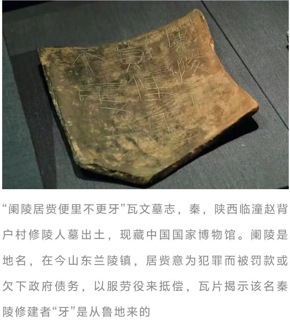 这批瓦片称“赵背户村墓志葬瓦”,它们将秦陵修建者的身份揭开一角。墓主们的籍贯分属原三晋、齐、鲁和楚国故地。负责勘查的考古学家指出:“瓦文与记载相互参证,说明修建始皇陵的大批刑徒,都从原山东六国诏调而来。”