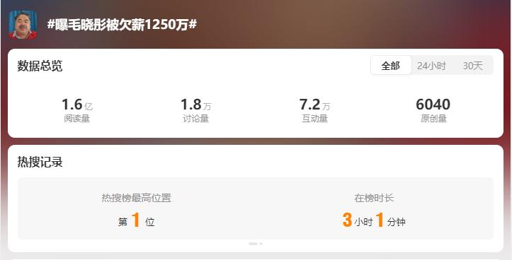 原标题:《女演员毛晓彤被曝遭欠薪1250万!涉事公司官微已停更近7年》