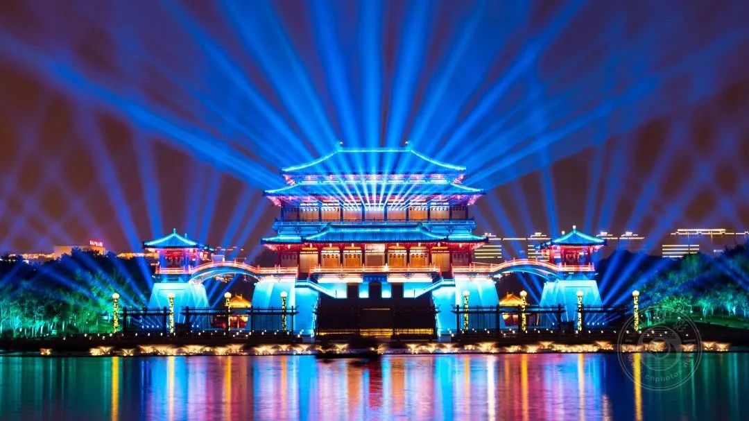 十月国庆期间盛大灯光秀眩目多彩。