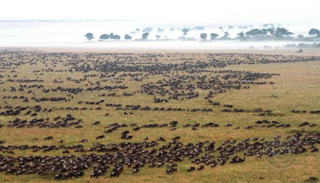 ▲ 《马赛马拉大迁徙》©杨追奔(四川乐山)2013年8月,拍摄于肯尼亚马赛马拉,有晨雾的弯曲树丛下面是马拉河。