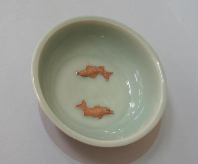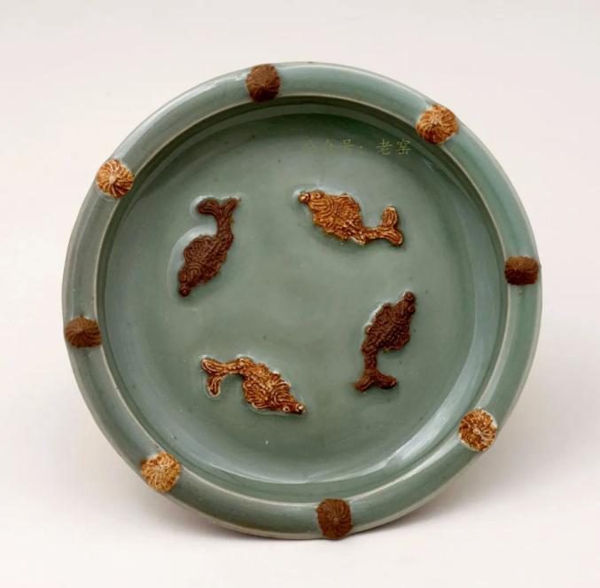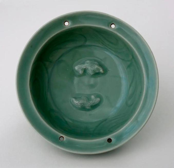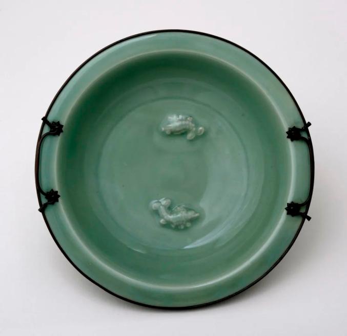 元 龙泉窑青瓷露胎贴花双鱼洗 美国大都会博物馆藏
