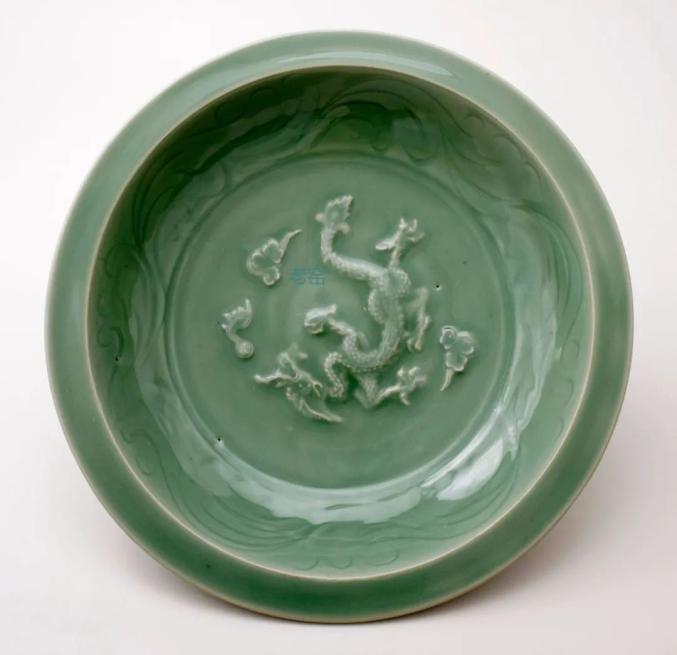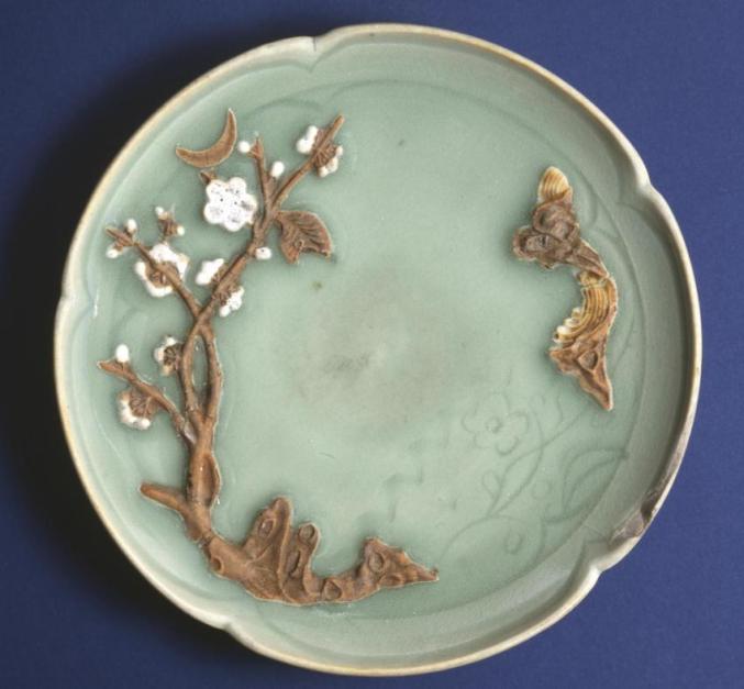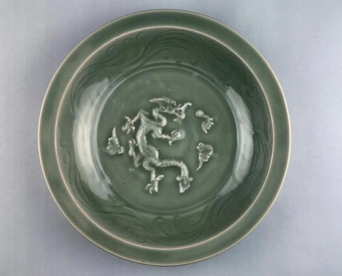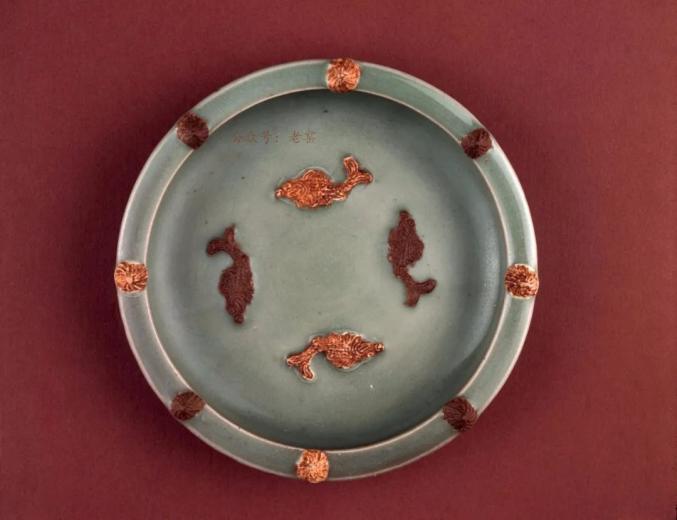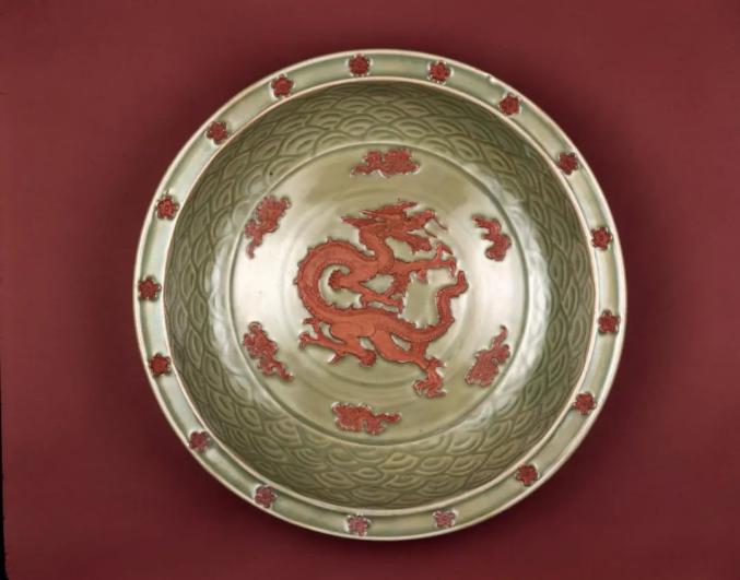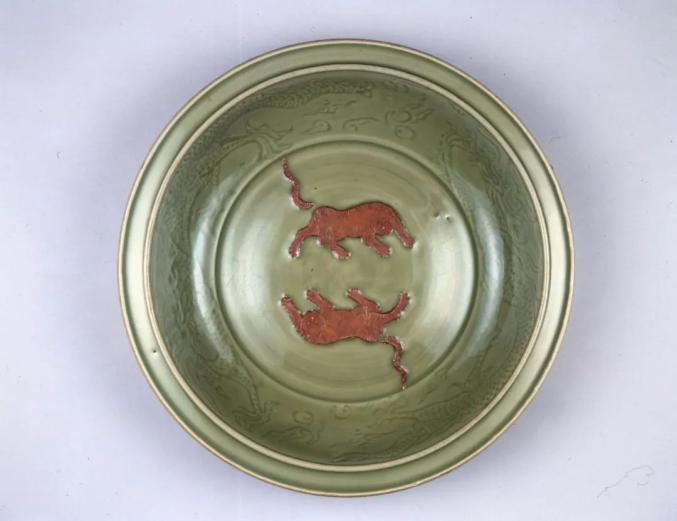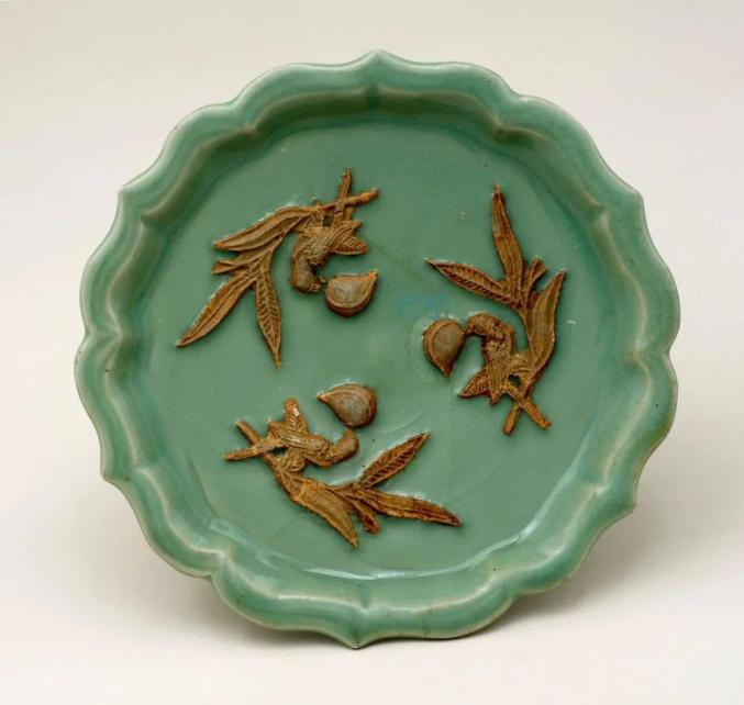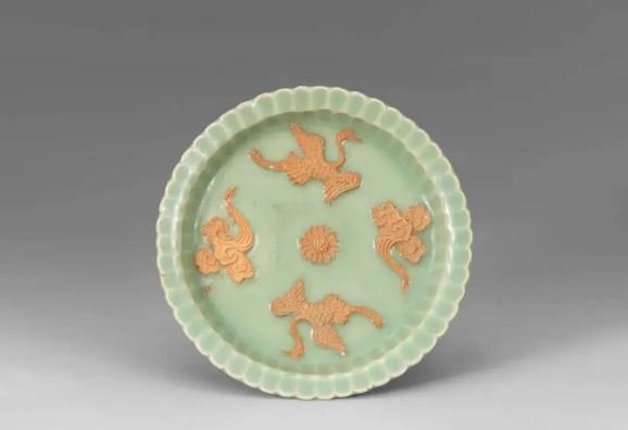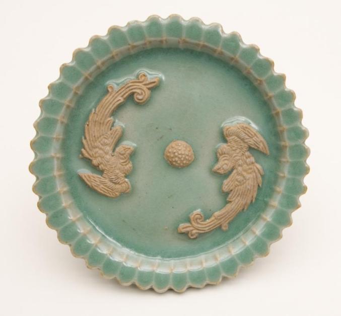 元 龙泉窑露胎双凤纹盘 美国芝加哥博物馆藏