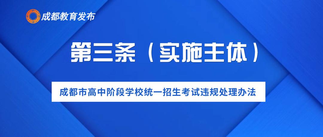 成都市教育考试院(以下简称市教育考试院)、各区(市)县招考机构及考点依据本办法,对中考违规行为进行认定与处理。