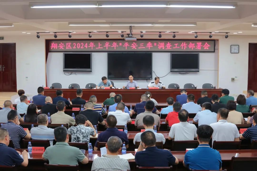5月27日下午,翔安区召开2024年度上半年“平安三率”调查工作部署会。区委常委、政法委书记王婴水出席会议并讲话,区政府副区长、公安分局局长吕培勤,区平安建设“三率”结对共建成员单位分管领导参加会议。