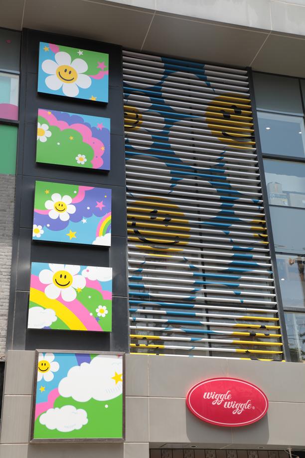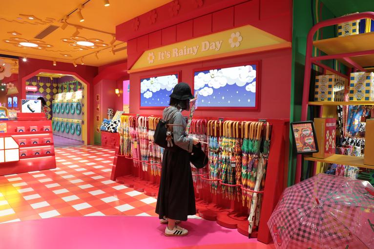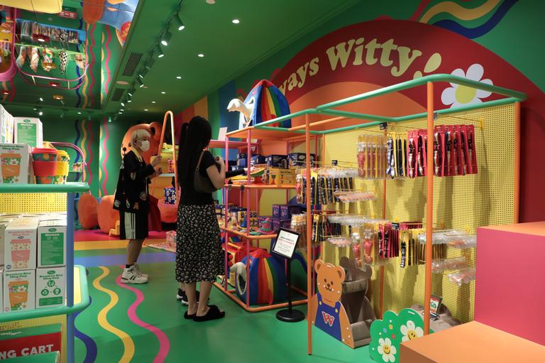 “我们是从小红书上看到(这里开了首家实体店)的,之前对wiggle wiggle有过一些了解,很早之前买过他们家的手机壳,就是那个很经典的笑脸花。”特意和朋友一起过来打卡体验的李女士告诉记者,“每层楼的风格都不一样,很有设计感。今天买了一支小熊笔,还给小朋友买了零钱包。”