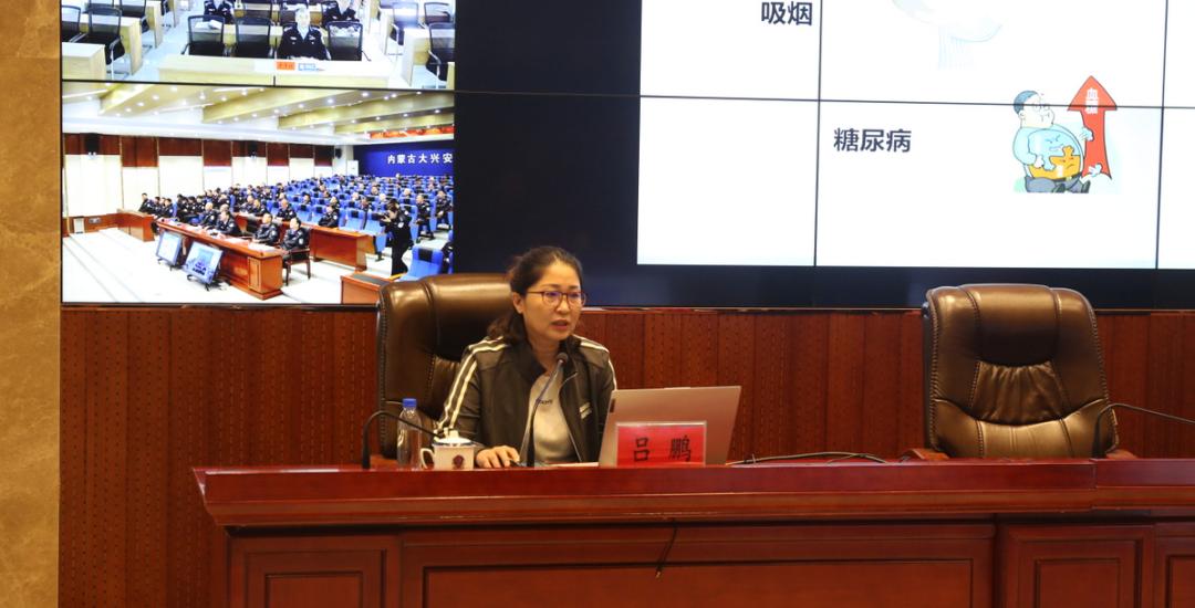 part3 健康大讲堂5月24日,在大林公安局五楼阶梯会议室,大林公安局心理健康大讲堂拉开序幕,大讲堂连线至21个基层分局,大林公安局在家党委班子成员和全体民警在主会场参加授课。此次大讲堂内容涉及积极心理学和冠心病、脑梗塞疾病预防两个方面,呼和浩特市公安局心理健康服务中心蔡云鹏主任和牙克石市人民医院心肾内科吕鹏主任为全体民警进行授课。