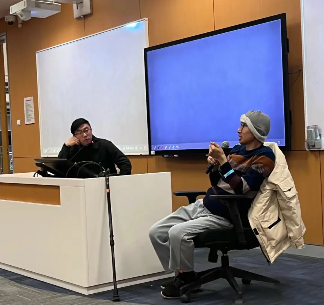●今年3月的一节课,朱锐与刘畅在下课前对话。讲述者供图回到课堂中,他让担任助教的博士生徐如水帮他录恐怖片。镜子里映照出一个女人梳头的身影,空房间只有一把椅子——每次录制前,徐如水都会先计算好时间,按下“开始录制”后,跑到离电脑远远的地方,用手机数秒,到了时间,再跑回来点击“结束”。