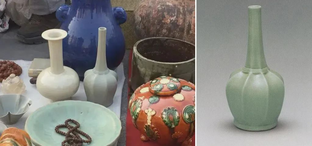 故宫馆藏文物“越窑青釉八棱瓶”,在潘家园只能用来压布角。传说中“故宫都得来潘家园进货”,诚不我欺。图/网络