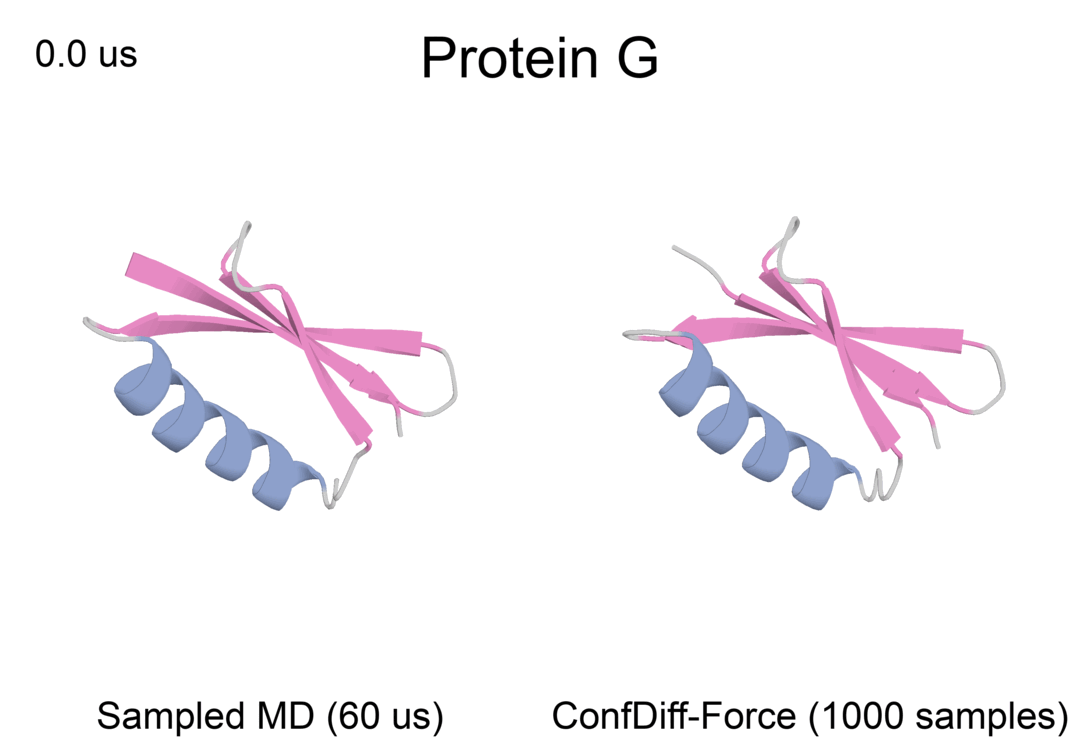 世界是变化的,分子是运动的,从预测静态单一结构走向动态构象分布是揭示蛋白质等生物分子功能的重要一步。探索蛋白质的构象分布,能帮助理解蛋白质与其他分子相互作用的生物过程;识别蛋白质表面下的潜在药物位点,描绘各个亚稳态之间的过渡路径,有助于研究人员设计出具有更强特异性和效力的目标抑制剂和治疗药物。但传统的分子动力学模拟方法昂贵且耗时,难以跨越长的时间尺度,从而观察到重要的生物过程。