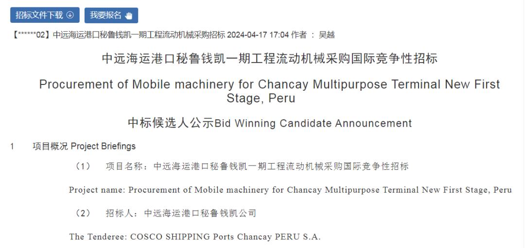 钱凯港的相关招标信息秘鲁当时的总统马丁·比斯卡拉(Martín Vizcarra)也公开说,和中国企业达成的协议能够把钱凯港“打造成整个南太平洋的交通枢纽”。